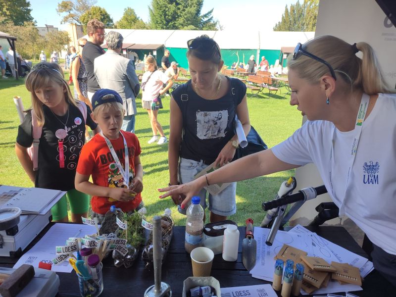 Zespół LOESS reprezentowany przez prof. UAM dr hab. Karolinę Lewińską i prof. UAM dr hab. Cezarego Kaźmierowskiego (WNGiG) oraz prof. UAM dr hab. Ewę Kacprzak, dr inż. Magdalenę Szczepańską i dr Joannę Morawską (WGSEiGP) przygotował stanowisko gleboznawcze pod hasłem: “ZDROWA GLEBA – CO TO TAKIEGO?”. Uczestnicy imprezy mieli okazję zapoznać się ze sprzętem wykorzystywanym w badanich gleby oraz z aplikacją służącą do mapowania środowiska glebowego. Szczególnie duże zainteresowanie wzbudziły warsztaty pt. “ROZPOZNAJ ZDROWĄ GLĘBĘ - UZIARNIENIE, BARWA, GĘSTOŚĆ, ODCZYN – JAK I CZYM MOŻNA TO ZMIERZYĆ?”. Najmłodsi chętnie zdobywali wiedzę o glebie podczas zajęć plastycznych (malowanie farbami przygotowanymi z różnych typów gleb).