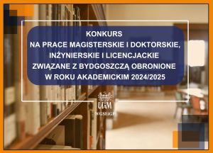 Prezydent Bydgoszczy ogłasza konkurs pn. Nagroda Prezydenta Miasta za związane z Bydgoszczą prace magisterskie i doktorskie, inżynierskie i licencjackie oraz nagroda dla promotorów prac obronionych w roku akademickim 2024/2025.