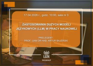 Serdecznie zapraszamy na seminarium naukowe Wydziału Geografii Społeczno-Ekonomicznej i Gospodarki Przestrzennej, podczas którego prof. UAM dr hab. Artur Bajerski wygłosi referat pt. „Zastosowania dużych modeli językowych (LLM) w pracy naukowej”Seminarium odbędzie się w piątek 17.04.2026 r. o godz. 10:00 w sali nr 3 Collegium Geographicum.Zapraszamy do wzięcia udziału w seminarium i liczymy na ...