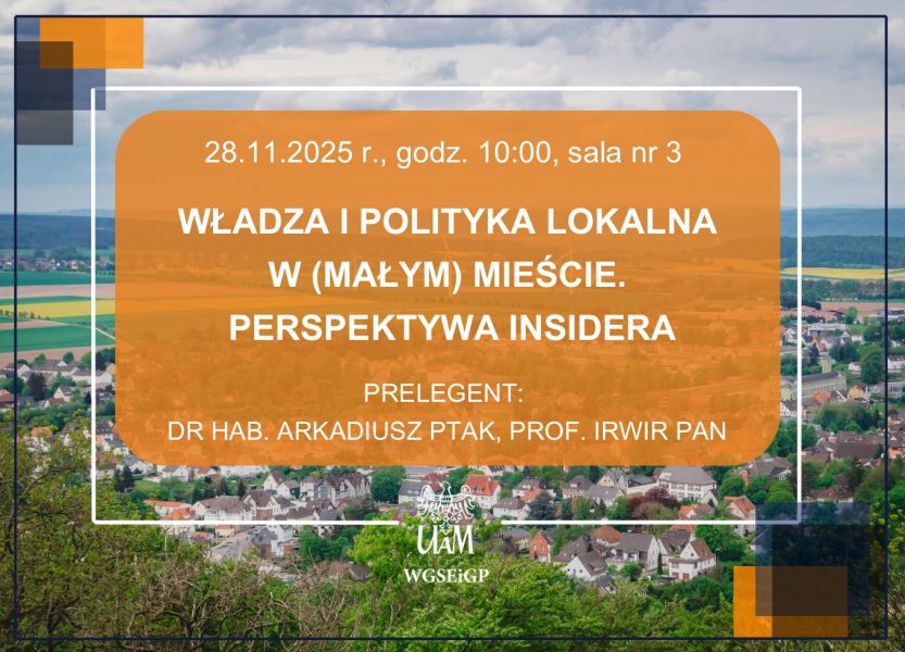 Serdecznie zapraszamy na seminarium naukowe Wydziału Geografii Społeczno-Ekonomicznej i Gospodarki Przestrzennej, podczas którego dr hab. Arkadiusz Ptak, prof. IRWIR PAN wygłosi prelekcję pt. "Władza i polityka lokalna w (małym) mieście. Perspektywa insidera”.